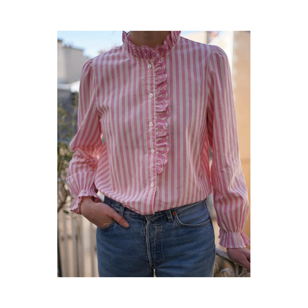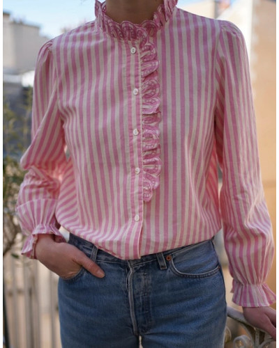 Très jolie blouse à rayures roses et blanches