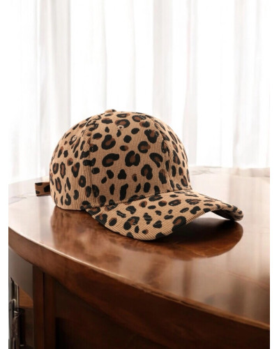 Casquette Léopard Camel en Velours Côtelé Tendance