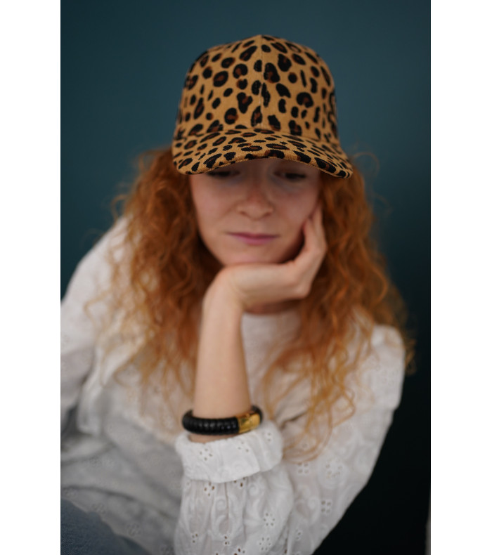 L'imprimé animal est rehaussé par une élégante couleur camel, ce qui rend cette casquette facile à coordonner avec vos tenues décontractées ou streetwear.