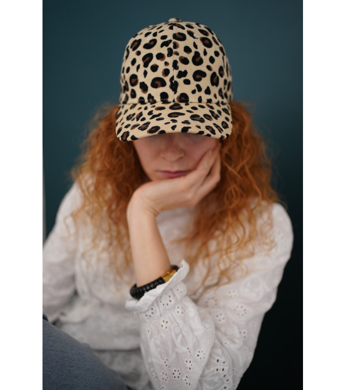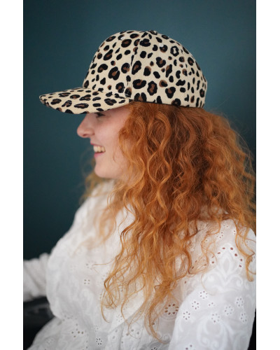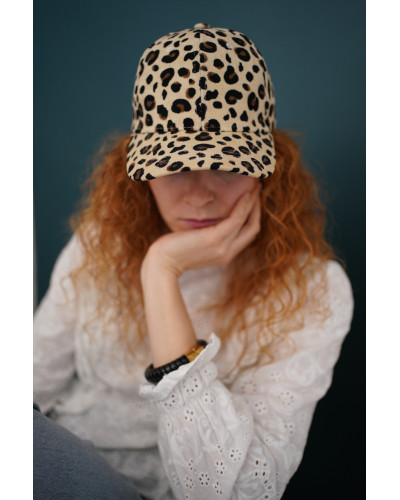 Casquette Léopard Beige en Velours Côtelé – Style & Confort