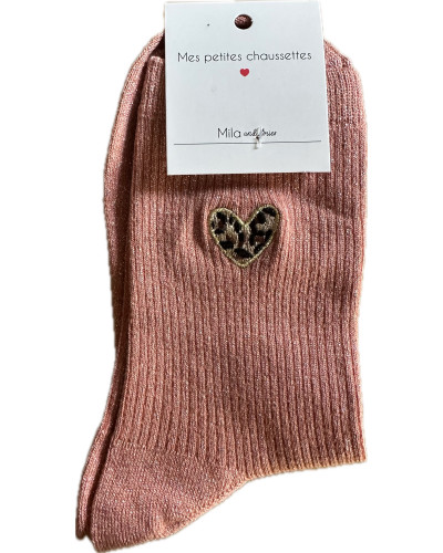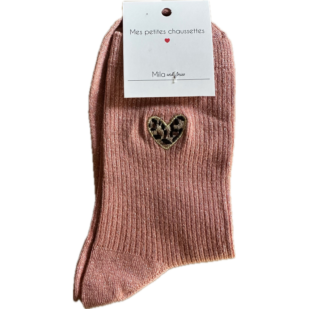 Milë Mila - Chaussettes à paillettes coeur léopard - Rose