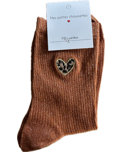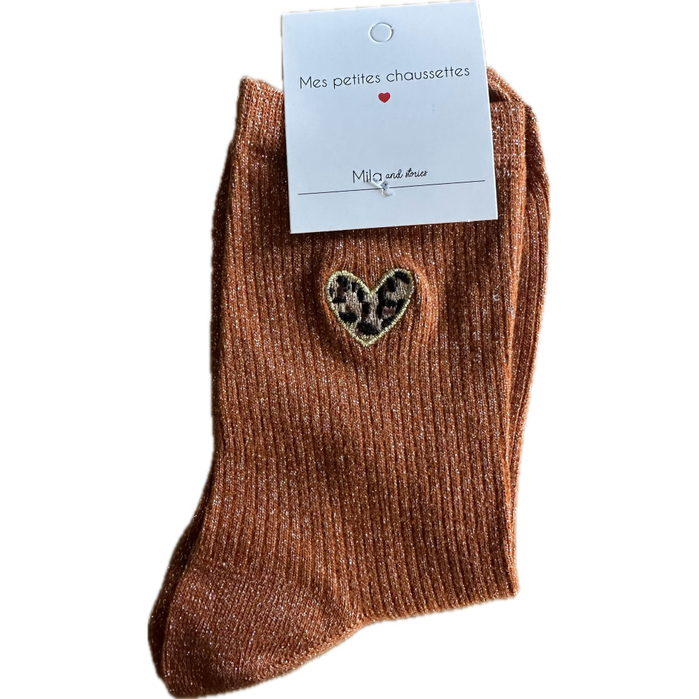 Milë Mila - Chaussettes à paillettes coeur léopard - Orange