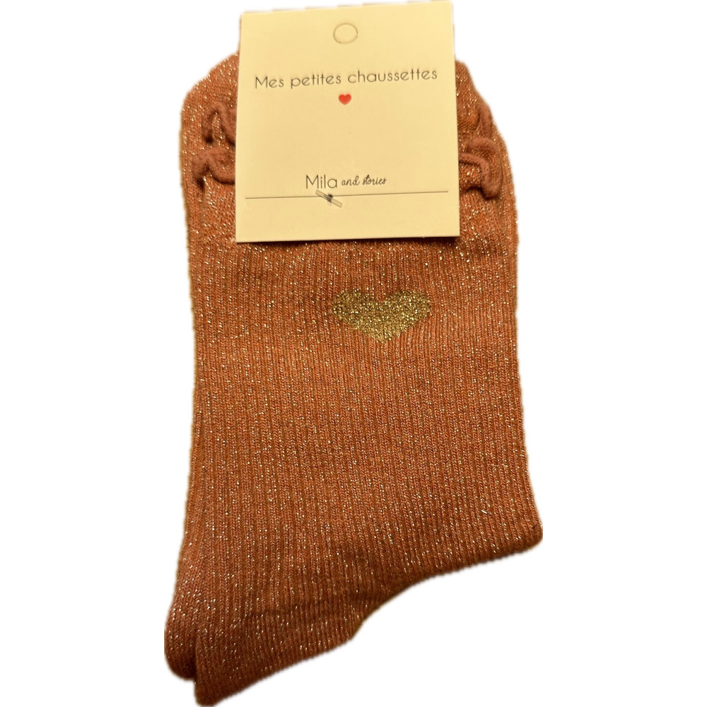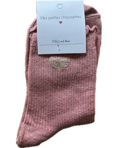 Milë Mila - Chaussettes à paillettes coeur - Rose
