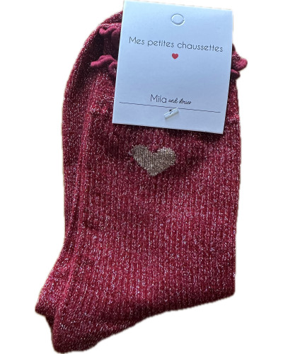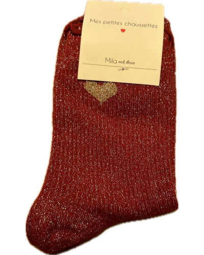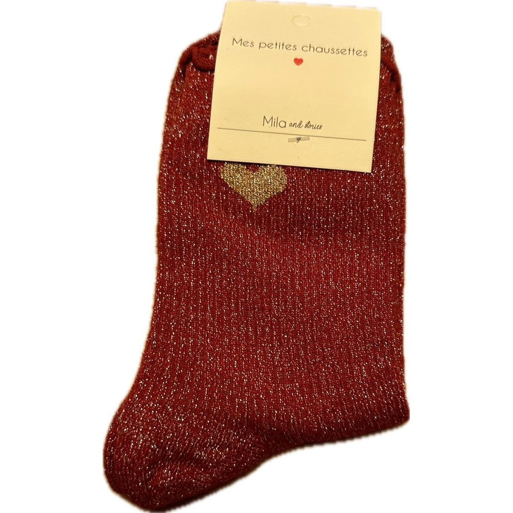 Milë Mila - Chaussettes à paillettes coeur - Rouge