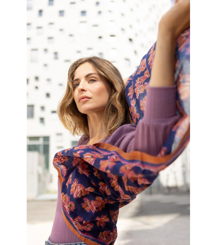 Apportez une touche de couleur et de légèreté à votre garde-robe avec le Big Foulard Dupatta en teinte Violeta Navy. Conçu par Apaches Collections, ce foulard XXL est l’accessoire parfait pour les journées fraîches ou pour styliser vos tenues avec raffinement.