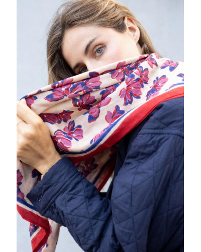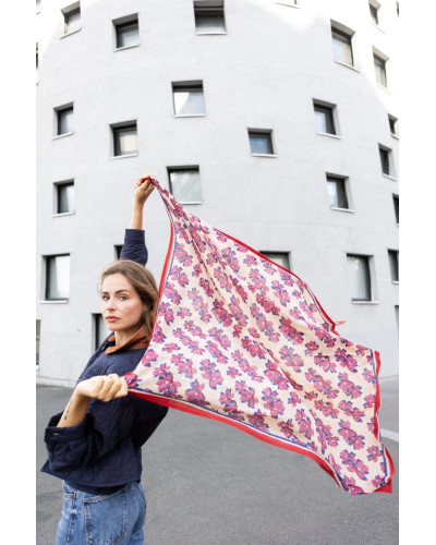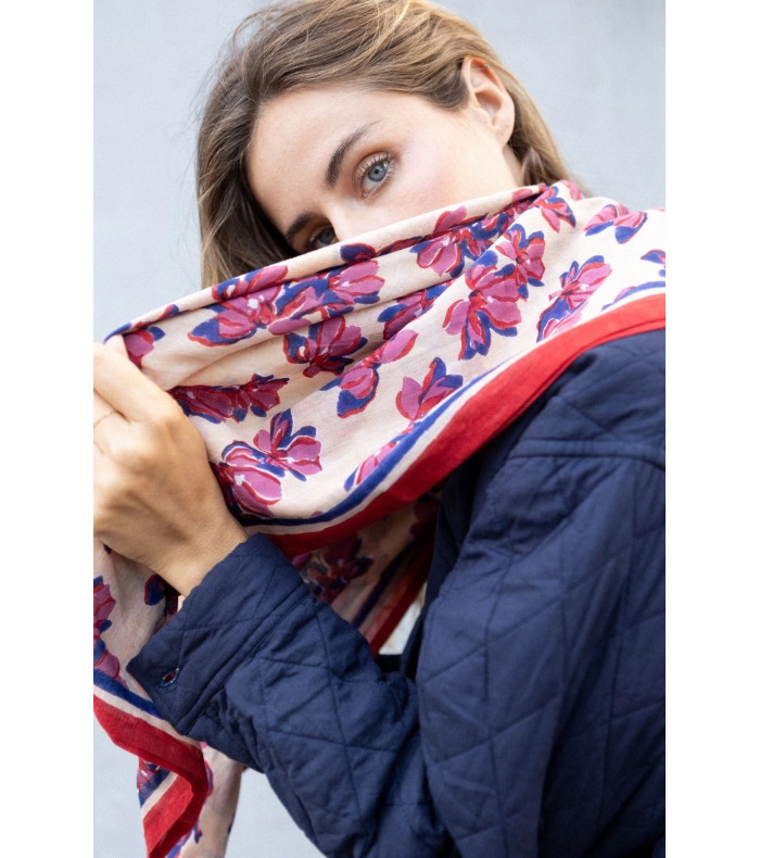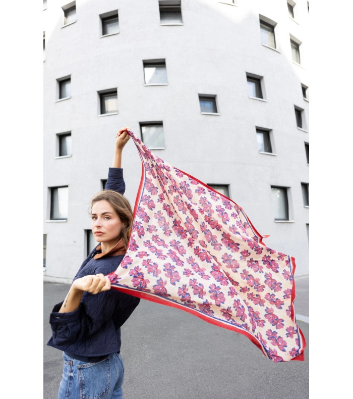 Fabriqué en 100 % coton, il offre une texture douce et respirante, idéale pour toutes les saisons. Sa taille généreuse permet de le porter de multiples façons : en écharpe, en châle, ou même en paréo léger.